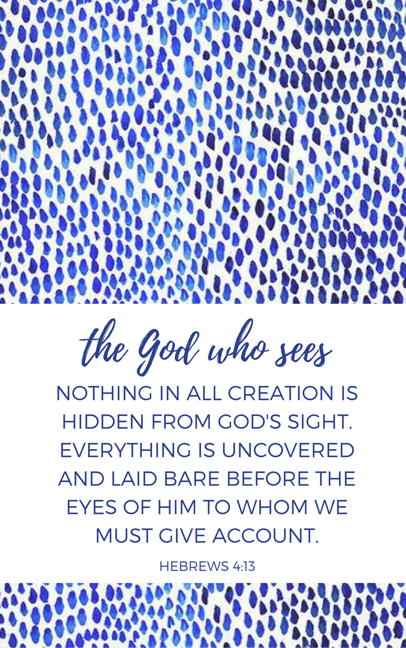 Friend, God sees you, even when you think no one’s watching. He sees you, even when you feel unnoticed. God sees you, even when you think you’re hiding.